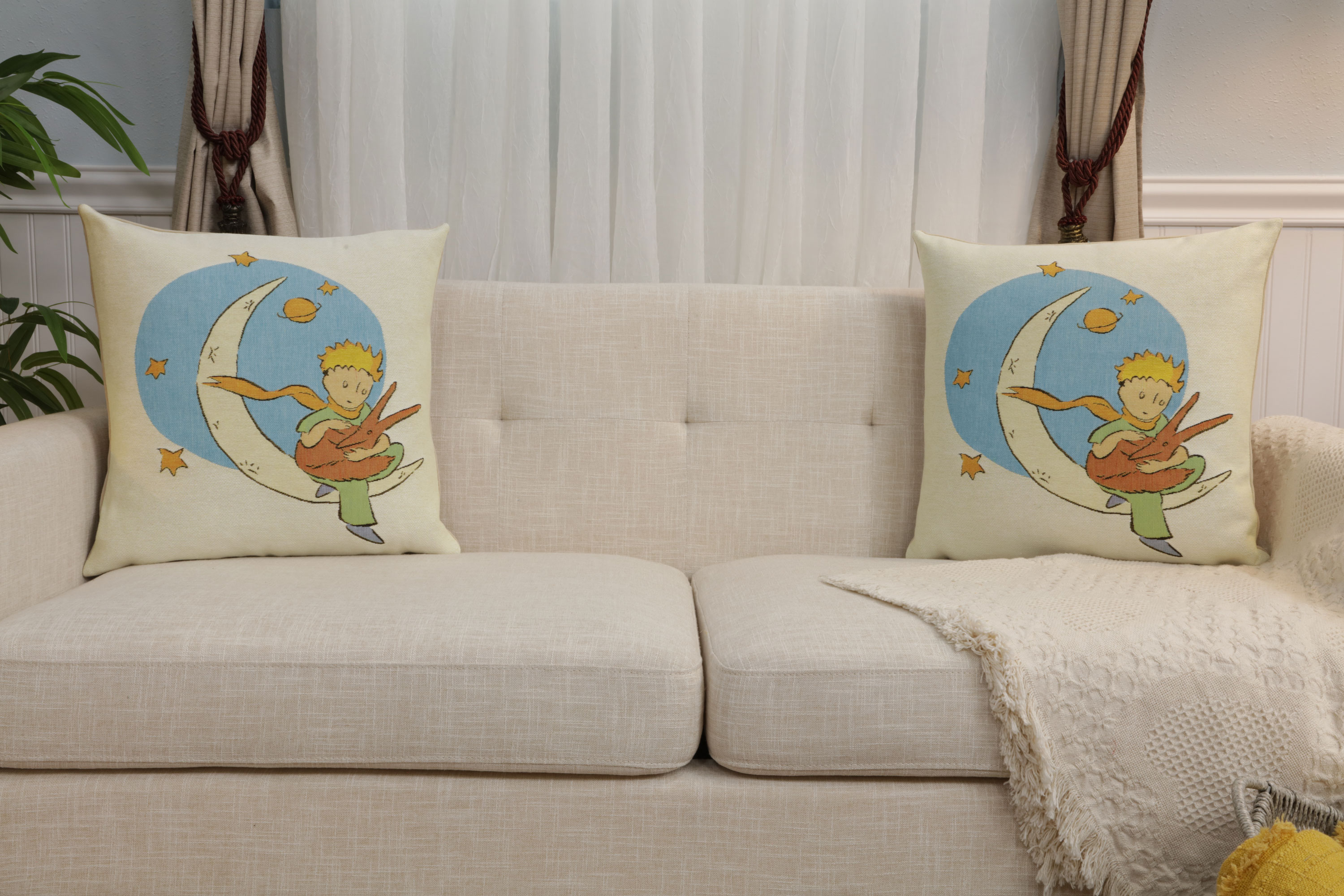 The Little Prince with a Fox on the Moon Belgian Sofa Pillow Cover